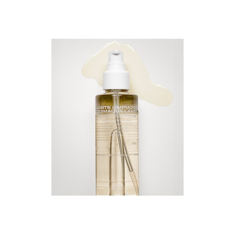 Aceite limpiador facial suave y ligero que limpia y desmaquilla en profundidad todo tipo de pieles. Formulado con aceites de Albaricoque, Pepitas de uva, Jojoba, Girasol y Vitamina E, que dejan una agradable sensación de confort en la piel tras su uso. Gracias a su carácter lipófilo ayuda a eliminar el exceso de sebo, maquillaje, cosméticos o fotoprotectores resistentes al agua. Ideal como primer paso de la doble limpieza. Su textura aceite se aclara fácilmente con agua y no deja residuo graso en la piel.